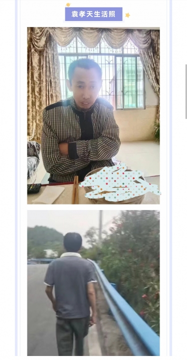 因袁孝天一直以来患有精神疾病,常年在家很少外出。7月12日凌晨5点,不知为何从家中出门,乘坐一辆摩托车前往大昌镇(后询问摩托车司机得知,当时袁孝天表示要到巫山乘车前往湖北巴东方向),于大昌十字街乘坐班车至巫山翠屏汽车站,随后不知所踪。