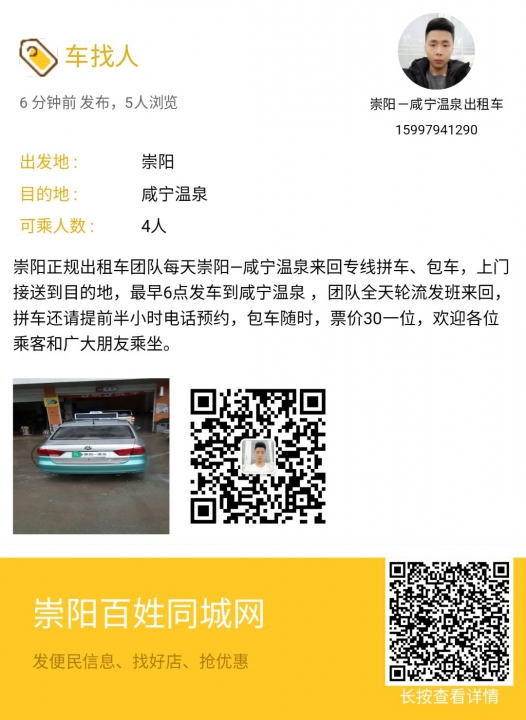 崇阳正规的士拼车和长途大巴通讯录