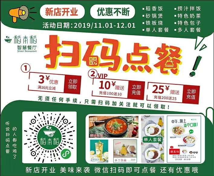 稻本稻无人(智慧)餐厅正式营业啦,进店优惠多多,欢迎大家光临品尝.饱口福!