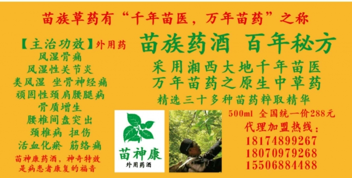 百年苗医,千年特效药酒,
