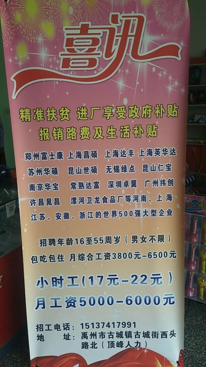 禹州古城顶峰人力高价小时工企业1⃣️郑州福耀玻璃厂...