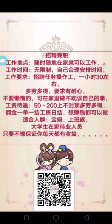 招聘小时工,玩手机的,带孩子的,上学的,都来做任务吧,一天至少80元,多...