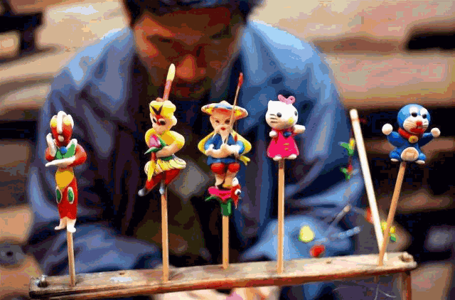 玩面塑、吃糖画,是无数人儿时的年味。为了提供这份年味,武汉面塑非遗传承人高志和早在前一天晚上就制作了多个面人,比如眼前这个披蓑衣的垂钓人,惟妙惟肖,足足耗费了他一个多小时。