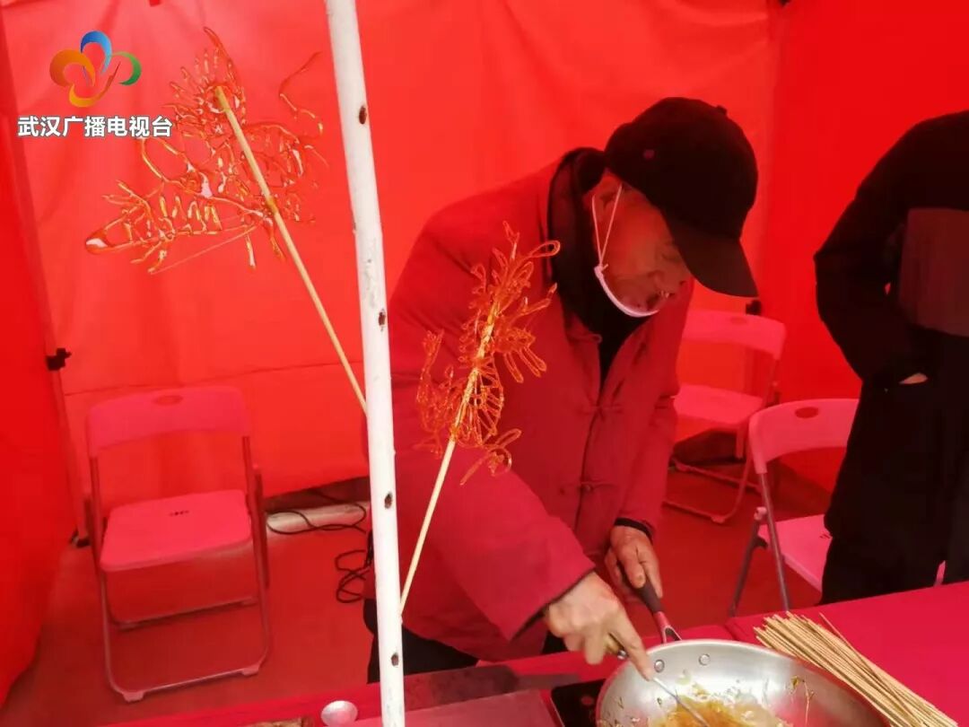 糖画的非遗传承人夏元金老人做了30多年糖画。一勺糖稀,在他手上舞动翻飞,一只栩栩如生的老鼠糖画瞬间完成。观众莫不拍手称赞。